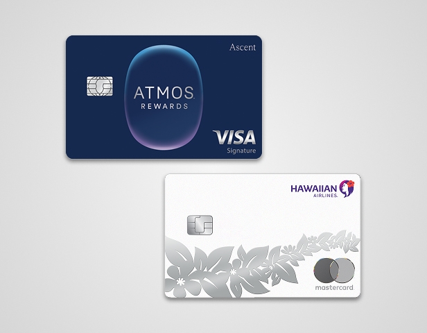 eligible Atmos™ Rewards Ascent Visa Signature® card or Hawaiian Airines® World Elite Mastercard®.